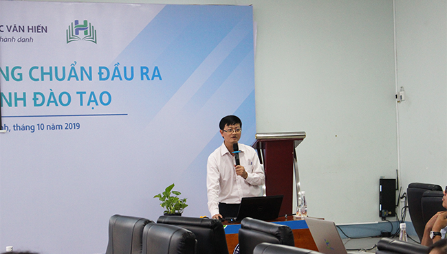 Nhằm nâng cao năng lực xây dựng chương trình đào tạo đạt chuẩn đầu ra đáp ứng yêu cầu của xã hội, sáng ngày 10/10/2019 tại trường Đại học Văn Hiến 613 Âu Cơ, Phường Phú Trung, Quận Tân Phú, trường Đại học Văn Hiến đã tổ chức chương trình tập huấn “Xây dựng chuẩn đầu ra chương trình đào tạo” cho cán bộ, giảng viên. Buổi tập huấn tiếp theo sẽ diễn ra vào ngày 17/10/2019.