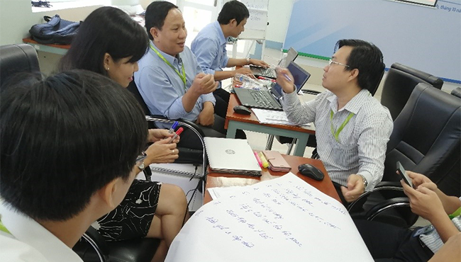 Hình ảnh: CB – GV tham gia thảo luận về quy trình để phát triển chương trình đào tạo